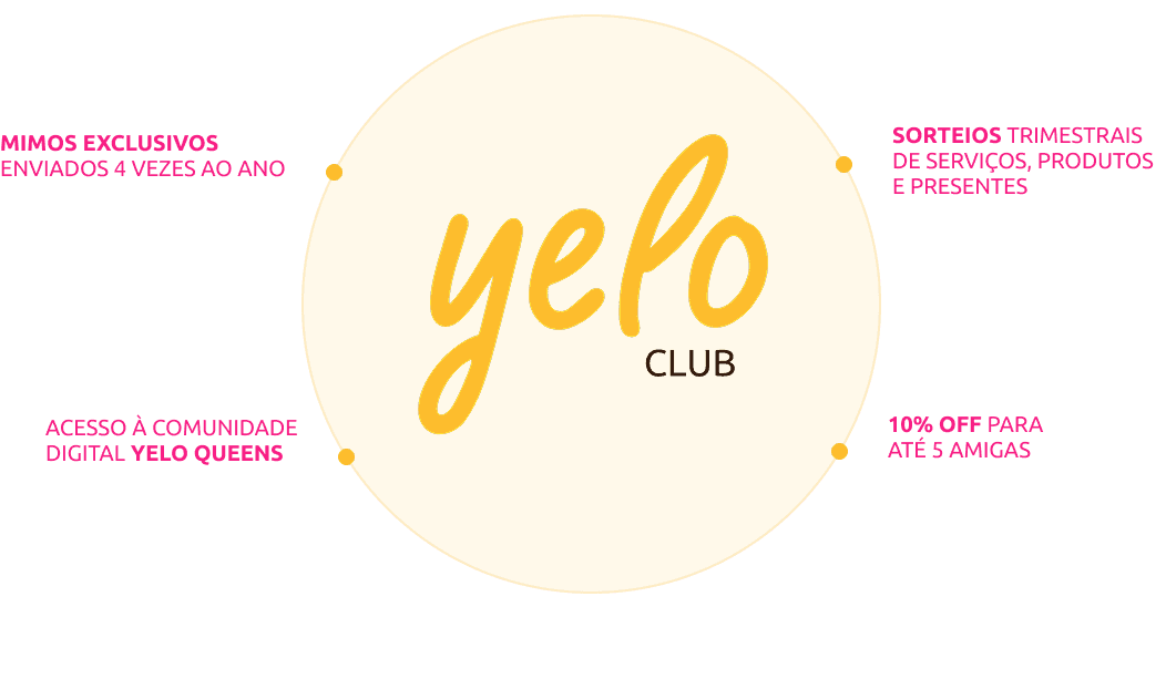 O Yelo Club é o clube de assinaturas do Espaço Amarelo, criado para mulheres que desejam cuidar do cabelo com frequência, economia e benefícios exclusivos. Você assina um plano e recebe serviços, conteúdos, vantagens e mimos especiais ao longo do ano.